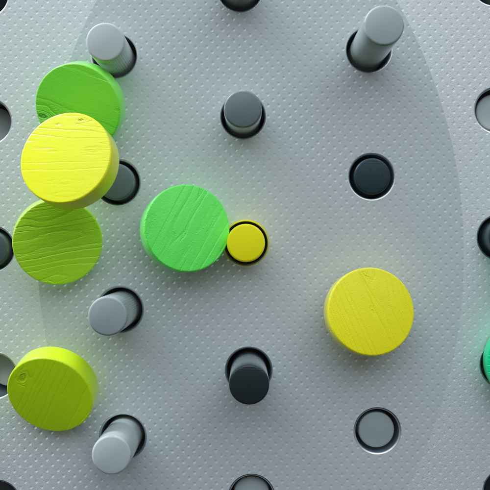 The colour palette is based on the new CI of Comdirect, predominantly anthracite and grayscale. Yellow acts as the highlight colour with a gradient to green drawing the viewer’s attention to the stories’ heroes. The environment is based on dots, points and circles inspired by visual language used in the world of stock markets.